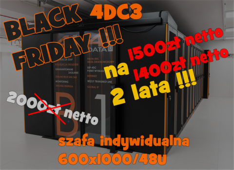- promocja dotyczy nowych indywidualnych szaf kolokacyjnych 600x1000/48U w pomieszczeniu 4DC3,
